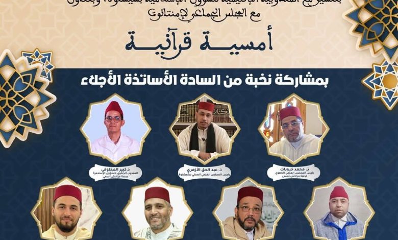 الأمسية من تنظيم المجلس العلمي المحلي لإقليم شيشاوة، بتنسيق مع المندوبية الإقليمية للشؤون الإسلامية بشيشاوة، وبشراكة مع المجلس الجماعي لإمنتانوت، في إطار الجهود الرامية إلى إحياء المجالس القرآنية وتقوية الارتباط بكتاب الله تعالى.